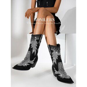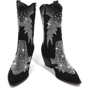 MATERIAL: These sparkly boots have a soft, breathable lining, suitable for all seasons. Improved rhinestone paste craft to ensure that the rhinestones do not fall off.