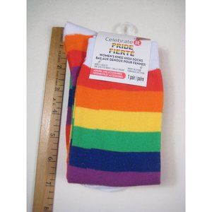 Women Pride Knee High Socks Adult One Size 1 Pair Rainbow Polyester