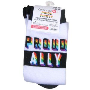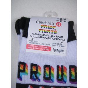 Women Pride Proud Ally Knee High Socks Adult One Size 1 Pair Rainbow Polyester