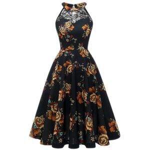 Women Prom Wedding Dress Floral Halter Lace A-Line Short Vintage Black (41)