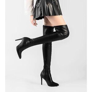 Women Pu Black Polyurethane Over The Knee High Stretchy Leather Thigh High Boots