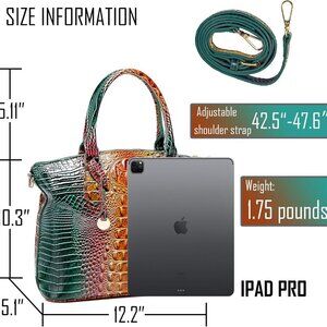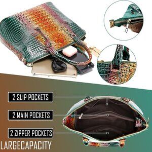 High Quality Material: This handbag is made of high-quality, water-resistant, and scratch-resistant faux leather with a crocodile print. The shiny and textured exterior, along with the gold zippers and sturdy hardware, adds to its durability and stylish appeal. The soft and comfortable lining ensures the protection of your belongings