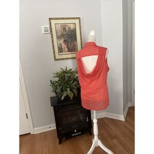 Women RECKLESS HEARTS Open Front Tunic XL Sleeveless Collared Open Back Orange