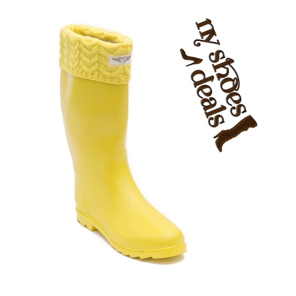 Women Rainboots, Yellow Sock Cuff Rubber Rain Boots