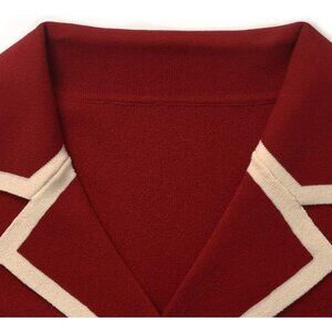 Women Red Button up 3/4 Sleeve Knit Dresses for Teacher Work Business