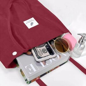 Corduroy Purse Structure The cotton reusable tote features 3 top snaps for a secure closure , 2 inside pockets and longer handles. Simply fasten snaps to prevent contents from spilling