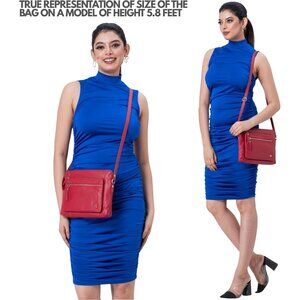Women Red Imported Leather Polyester Crossbody Sling Shoulder Crossover Bag