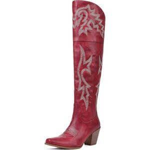 Stylish over the knee boots:Make a bold fashion statement with these red cowgirl boots for women. The tall silhouette pairs perfectly with skirts, shorts, or jeans for a trendy Western look any time of year