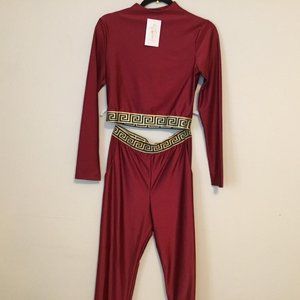 Women Red Sexy High Neck Stretchy Crop Top Long Sleeve