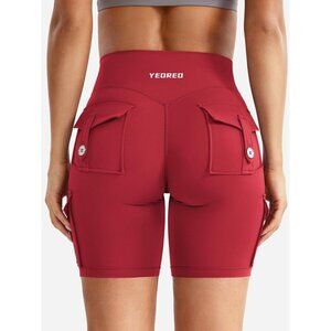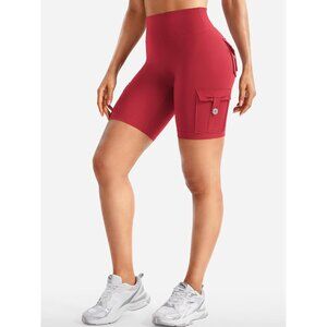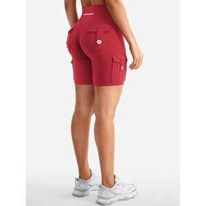 🆕Women Red Workout Biker Pockets Scrunch High Waisted 8" Inseam Gym Shorts