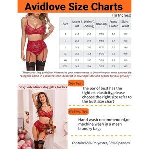 Women Red-2 Lingerie Set High Waisted Underwire Lingerie With Garter Belt Lace