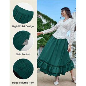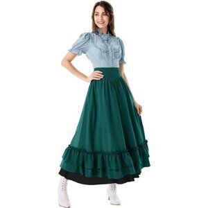 Women Renaissance Long Double-Layer Ruffle Skirt Green