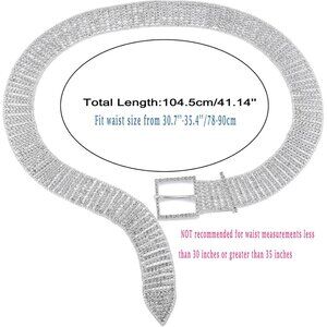 Features: Glamorous alloy metal belt adorned with multiple long strip-shaped synthetic diamonds, designed to catch the light and make you shine in any crowd. No holes, but easily adjustable for a perfect fit. The artificial rhinestones create a dazzling look that’s perfect for weddings, parties, or any special occasion.