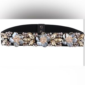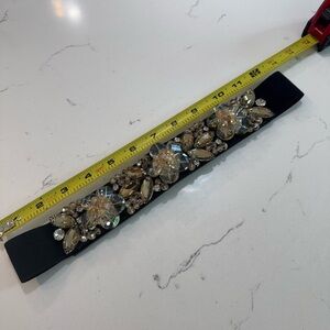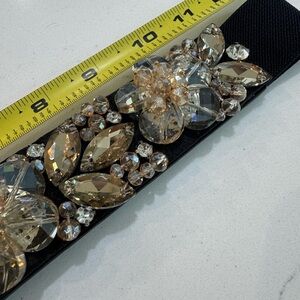 Women Rhinestone Decoration Waistband Stretch Elastic Dresses Waist Belts. Black belt with champagne cored rhinestones.