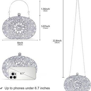 Features: This elegant, glittery clutch features a sleek silhouette with sparkling rhinestones, a magnetic closure, and a versatile detachable chain. Perfect for cocktail parties, proms, weddings, or any event where you want to shine!