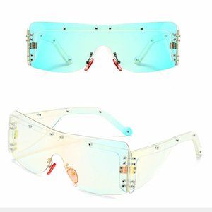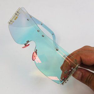 Women Rimless Sunglasses Oversized Flat Designer Single Lens Retro Vintage