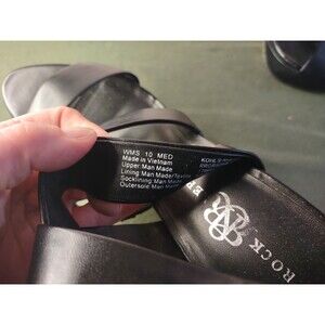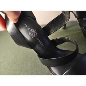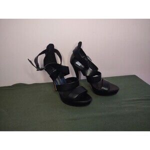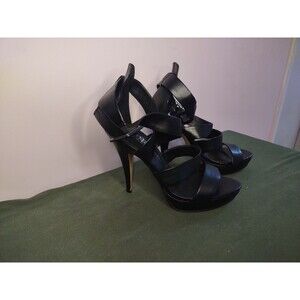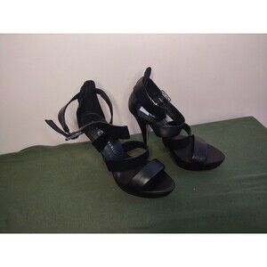 Women's Rock & Republic black strappy heels in size 10. The upper material is faux leather.