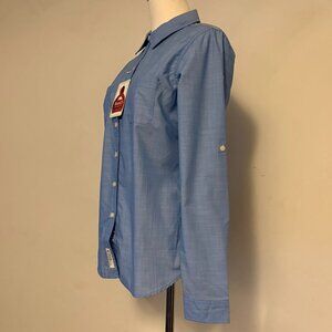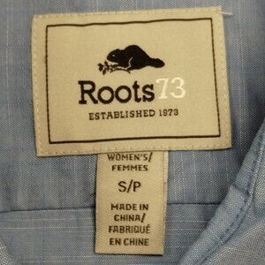 Women Roots 73 Blue Small Petite Western Style Button Up Shirt Roll Tab Sleeve
