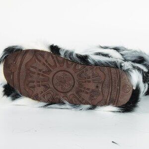 The measures of the fur boots is approximately 1 inches. Furry boot opening measures is approximately 12.5" around Synthetic sole. The measures is approximately 1 inches