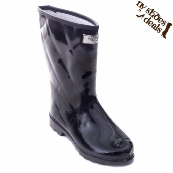 Women Rubber Rain Boots, 11'' Quilted Black Garden Rainboots, Size 5, NEW