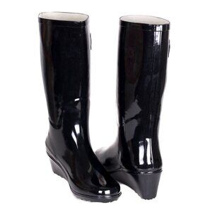 Women Rubber Rain Boots, Black Polka Dots Rainboots , Size 5