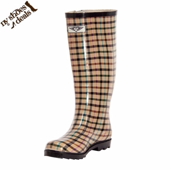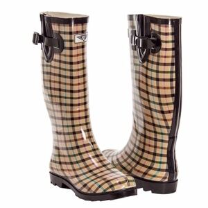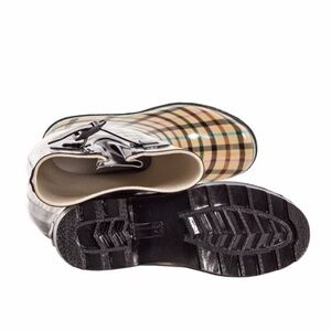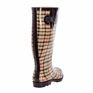 Women Rubber Rain Boots, Lines Plaid Rainboots