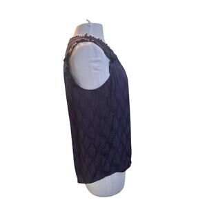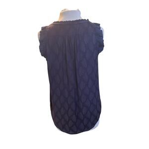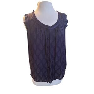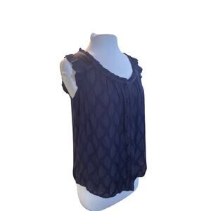 Women S Anthropologie Maeve Navy Blue Fan Print Blouse Shirt Top Ruffle Cap Slv