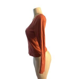 Women S Anthropologie T.La Ribbed Square-Neck Top Rust Long Sleeved Tee T-Shirt