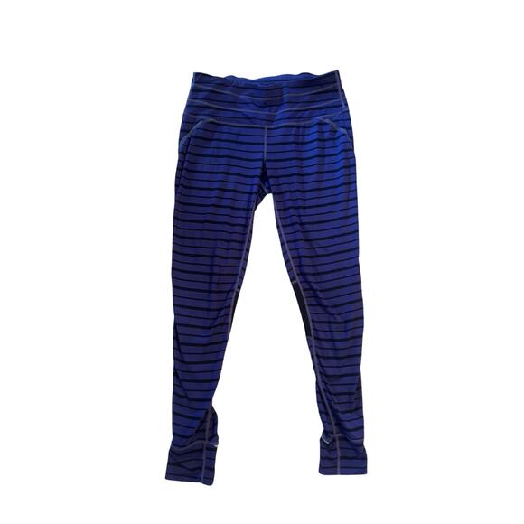 Women S Athleta Purple Black Stripe Crop Leggings Pants Yoga Jogger Run Gym