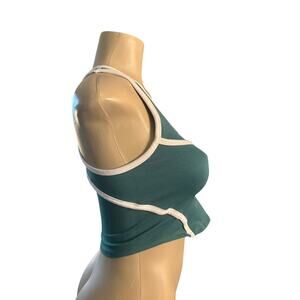 Women S M Free People FP Movement Cross Bar Cami Green White Crop Tank Top