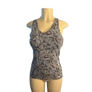 Women S TNF The North Face Brown Printed Tank Top Shelf Bra Hike Camp Strappy