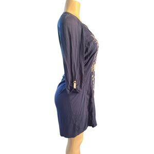 Women SP Petite Anthropologie TINY Button Embroidered Shirt Dress Tunic Boho