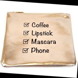 Women Sassy Morning List GoldMetallic Travel Makeup Vegan Leather Cosmetic Bag