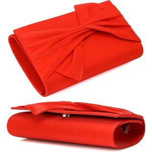 Propel your look this evening with this iXebella shimmering bow evening clutch, crafted in shimmering satin fabric, the oversized bow makes it a festive pick to easily match many formal outfits for wedding, party, prom and any formal events.
