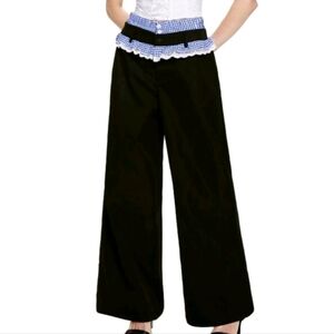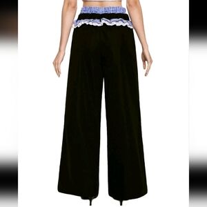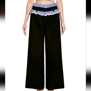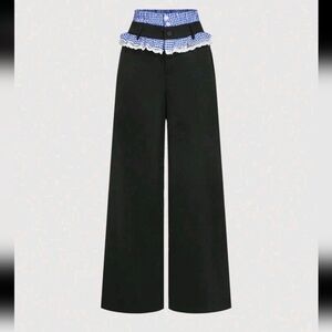 Women Say Contrasting Black Spliced Waist Straight Trousers,Cute Trousers