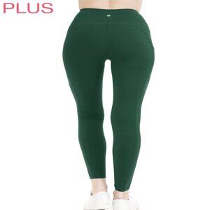 Women Sculpting Detailed High Waist Yoga Leggings w/Pockets Forest Green 1X-3X