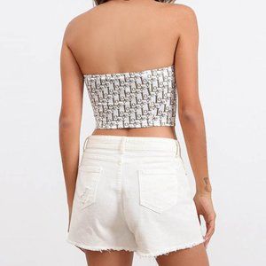 LOVE print with Frill trim, is cropped and sleeveless with a sweetheart neckline. The fabric is comfortable, sexy and stretchy. You can wear this on its own or layer it however you like. This Sweetheart top screams wardrobe essential.