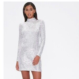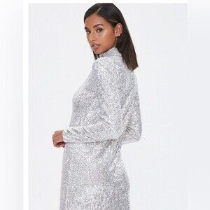 Women Sequin Bodycon Party, cocktail, Mini Dress grey/ silver size S