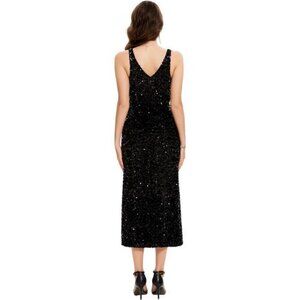 Women Sequin Dress Sleeveless V Neck A Line Black