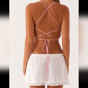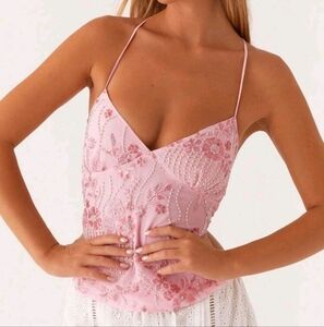 Women Sequin Sparkle Open Back Criss Cross Straps Tank Top Y2k Pearl Embellished