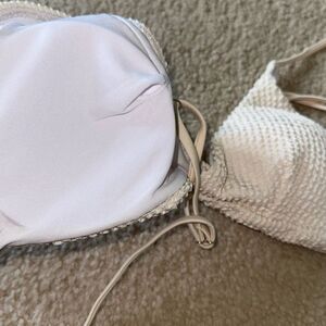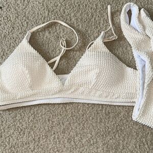 Stylish cream bikini set with a textured design. Perfect for the beach.