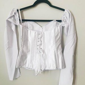 Women Sexy Corsets Is Finished Long Sleeve Off The Shoulder Blouse White Sz S-L