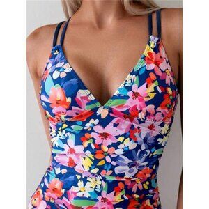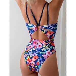 Women Sexy Summer Beach Floral Print V-Neck Slim Fit One-Piece Swimsuit