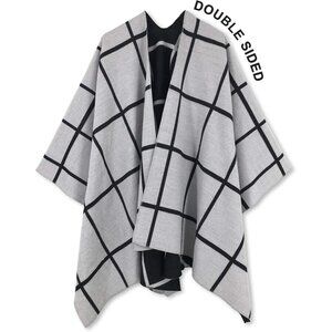 Women Shawl Wrap Poncho Ruana Cape Open Front Cardigan Fall Winter Black White
