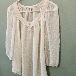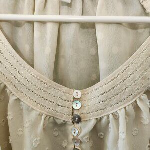 Women Sheer Ivory Top Blouse With 6 Pearl Button 3/4 Sleeve Size S