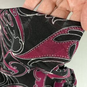 Women Sheer Mesh Faux Wrap Babydoll Top Sz L Paisley Fairy Grunge Whimsigoth Y2K