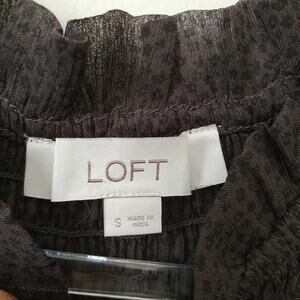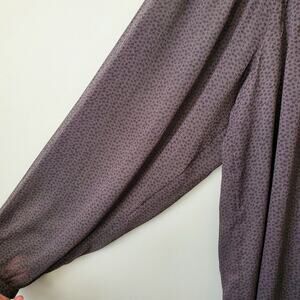 Darkest taupe gray, sheer smocked neck chiffon blouse S