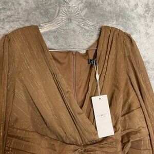 Women Shiny Metallic Fairy Whimsical Chiffon Surplice Maxi Dress 20 NWT Plus