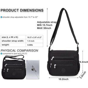 *Material: Waterproof nylon Style: Tasteful and Easy matching Size: :10.2x 3.9x 8.2inch (L x W x H) Weight: 0.68Ib. Lightweight designed for all-day comfort. Performance: Durable, Waterproof, and Washable Ladies Handbags Color:Black,Grey,Purple,Floral,Lovely Floral,Flower. Capacity:10 Pockets in Total, Keep Everything Organized Using Styles - Trendy handbag, vintage crossbody bag or stylish shoulder bag.