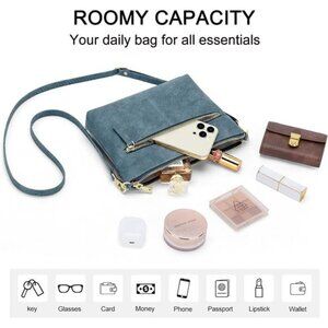 Product Features:The lightweight crossbody bag made from soft vegan leather for the outside, soft fabric lining inside, selected smooth zipper and metal hardware